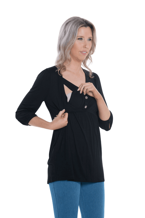 BILLIE LONG SLEEVE BREASTFEEDING TOP BLACK - FINAL SALE